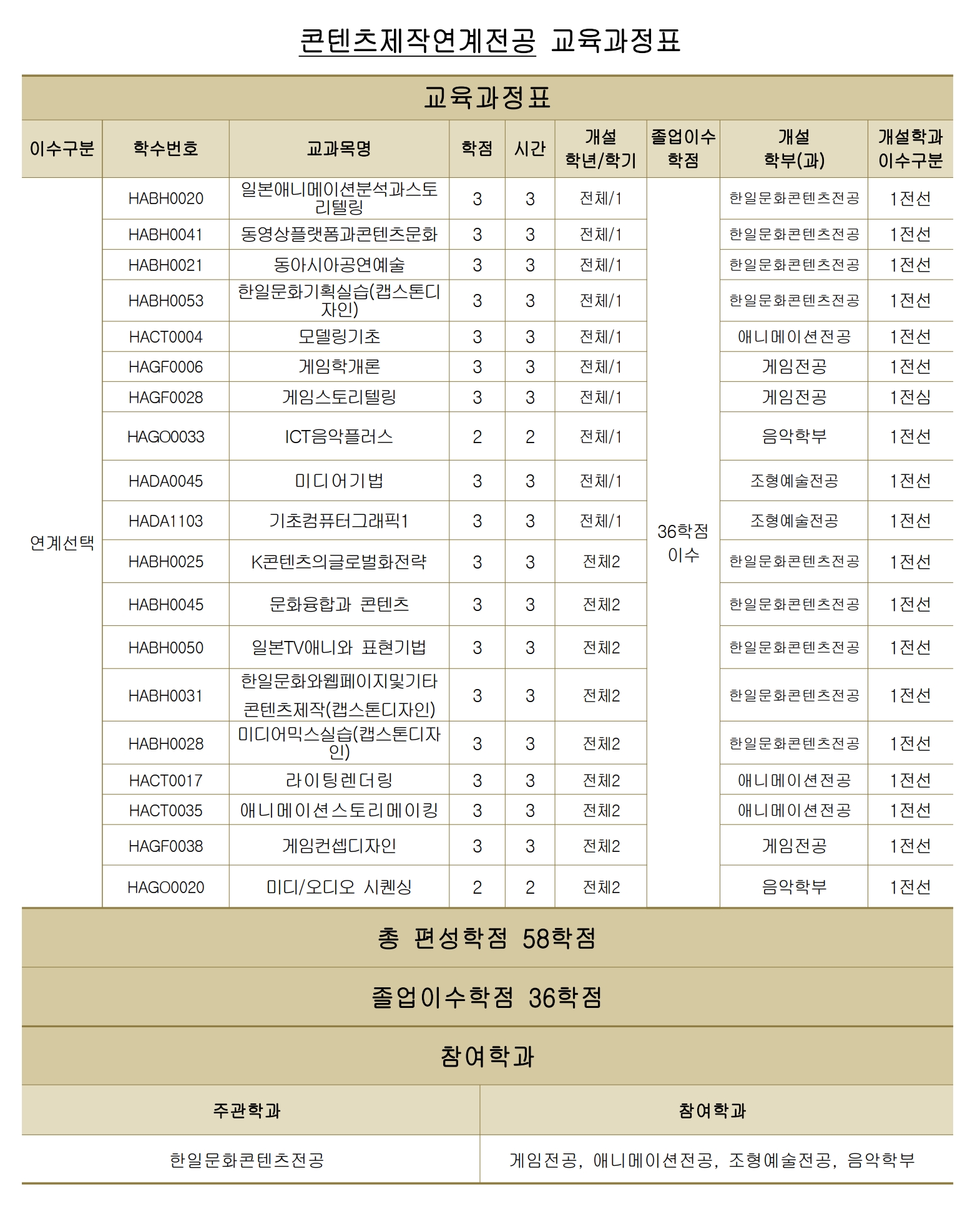 콘텐츠제작연계전공(한일문화콘텐츠전공 주관학과)