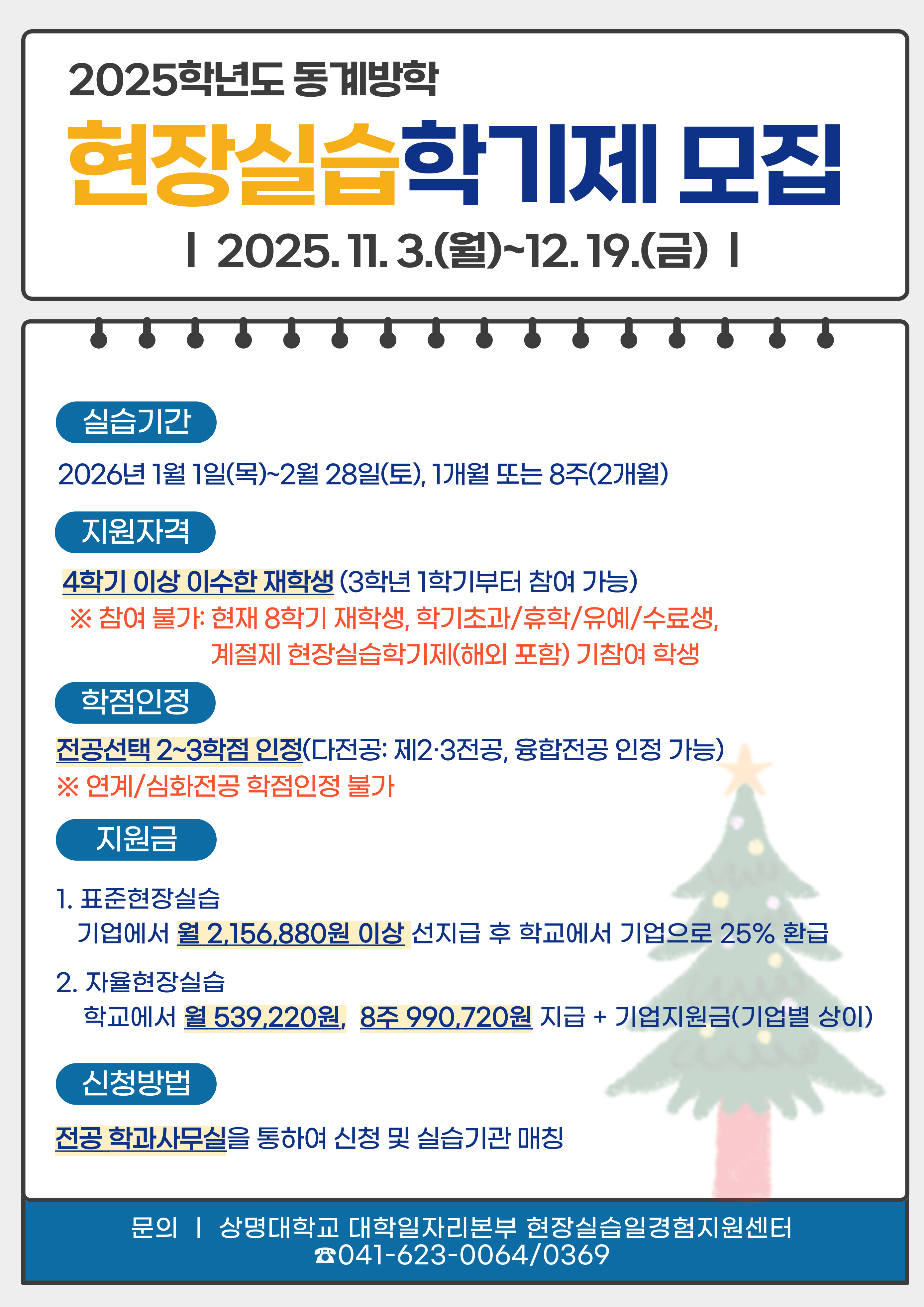 천안 [진로취업] [현장실습·일경험지원팀] 2025학년도 동계방학 현장실습학기제 시행 공고 -
